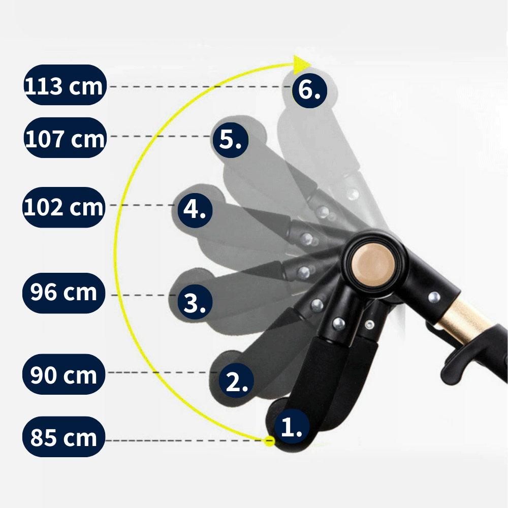 Vous apportez flexibilité et confort à chaque étape, permettant un ajustement facile selon vos souhaits et besoins, et garantissant une conduite parfaite pour les parents et le bébé.