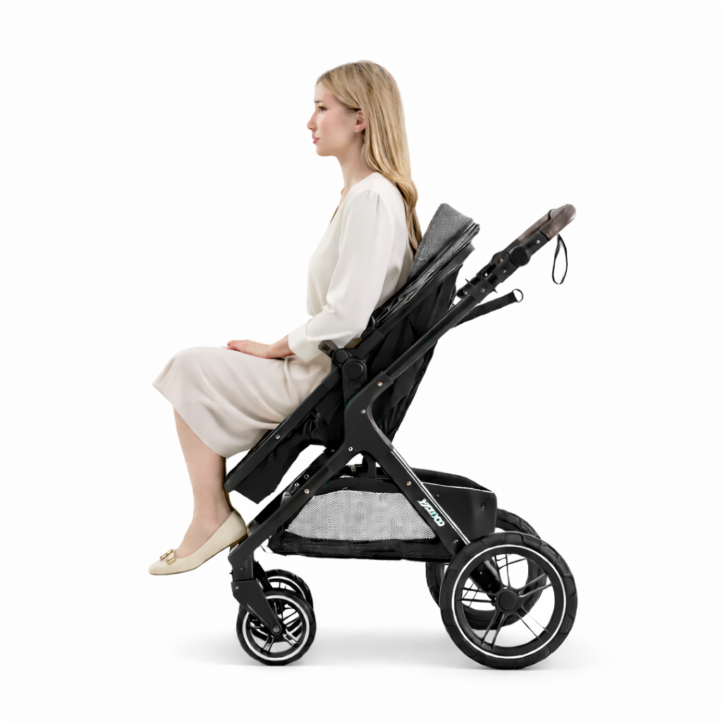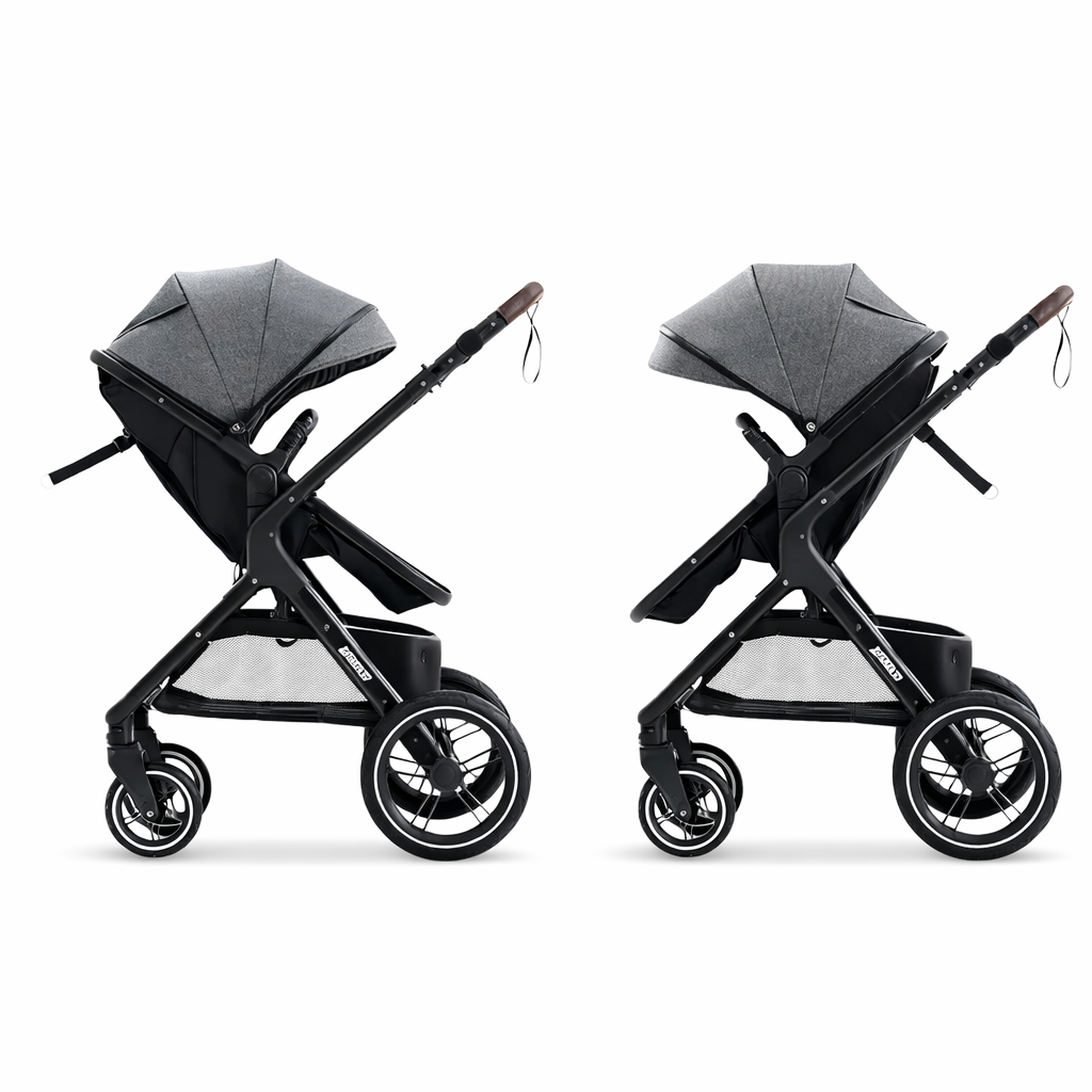 La poussette permet un réglage du siège dans les deux sens – votre enfant peut vous faire face pour un sentiment de sécurité ou être orienté dans le sens de la marche pour explorer les environs.