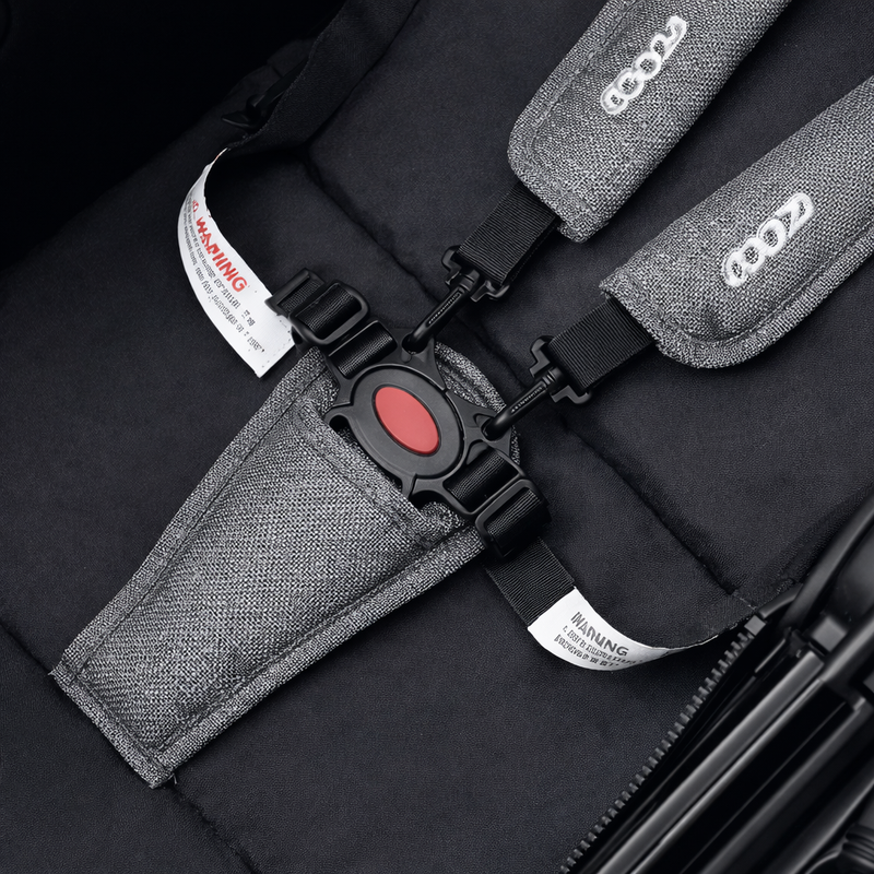 La poussette est équipée d'un harnais de sécurité à 5 points, qui assure la stabilité et la protection de l'enfant pendant le trajet.
