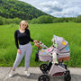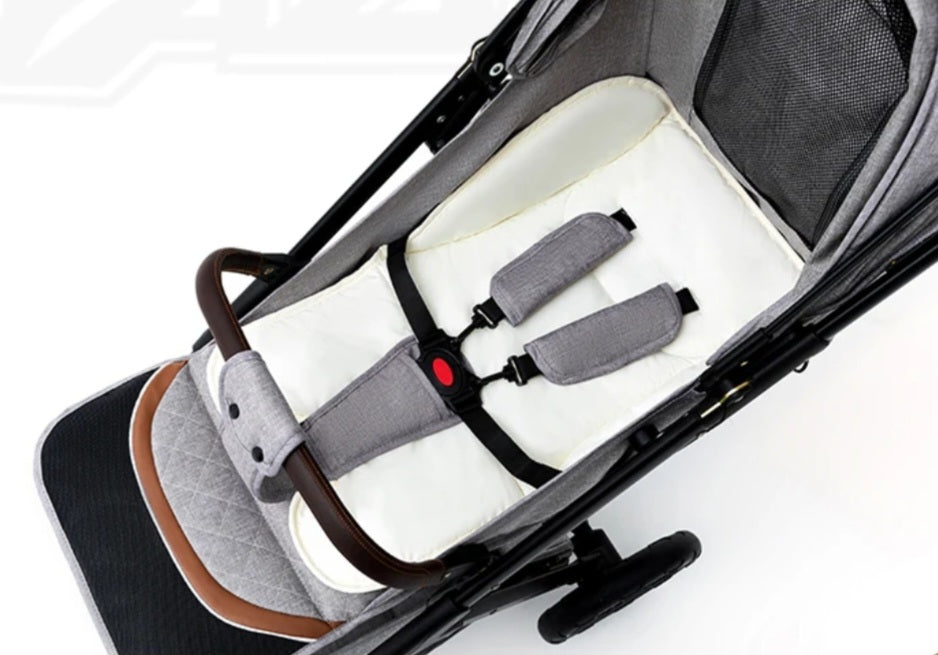 Découvrez la conduite la plus fluide pour votre tout-petit avec le système de suspension sur les roues avant. Notre poussette glisse sans effort sur tous les terrains, offrant un confort inégalé. Des trottoirs irréguliers aux sentiers d'aventure, votre enfant peut profiter d'un voyage doux et rembourré.